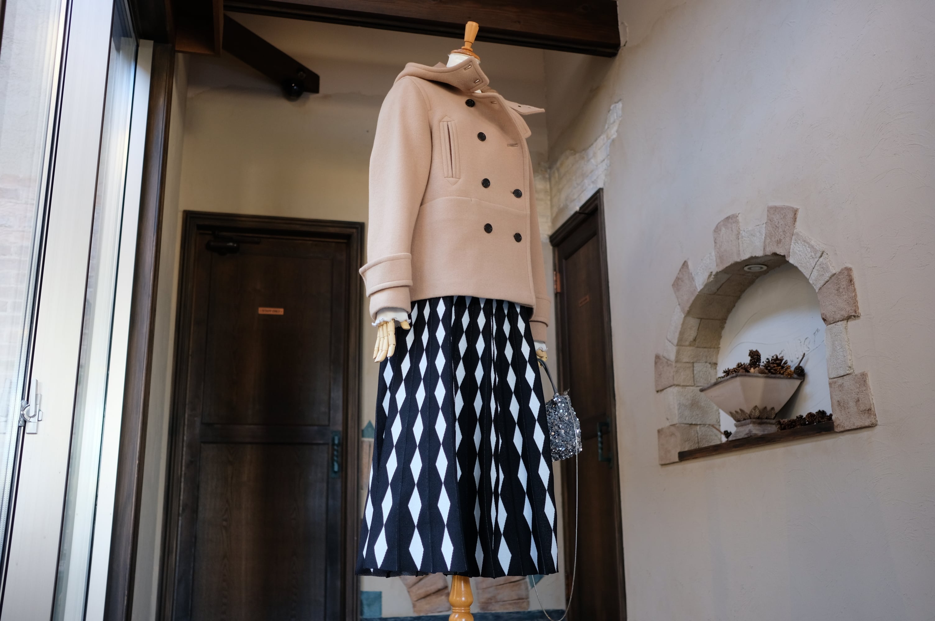 この「【BRAHMIN】ダイヤ柄 14G ダブルジャガードスカート<ブラック×オフホワイト>」をぜひお試しください!