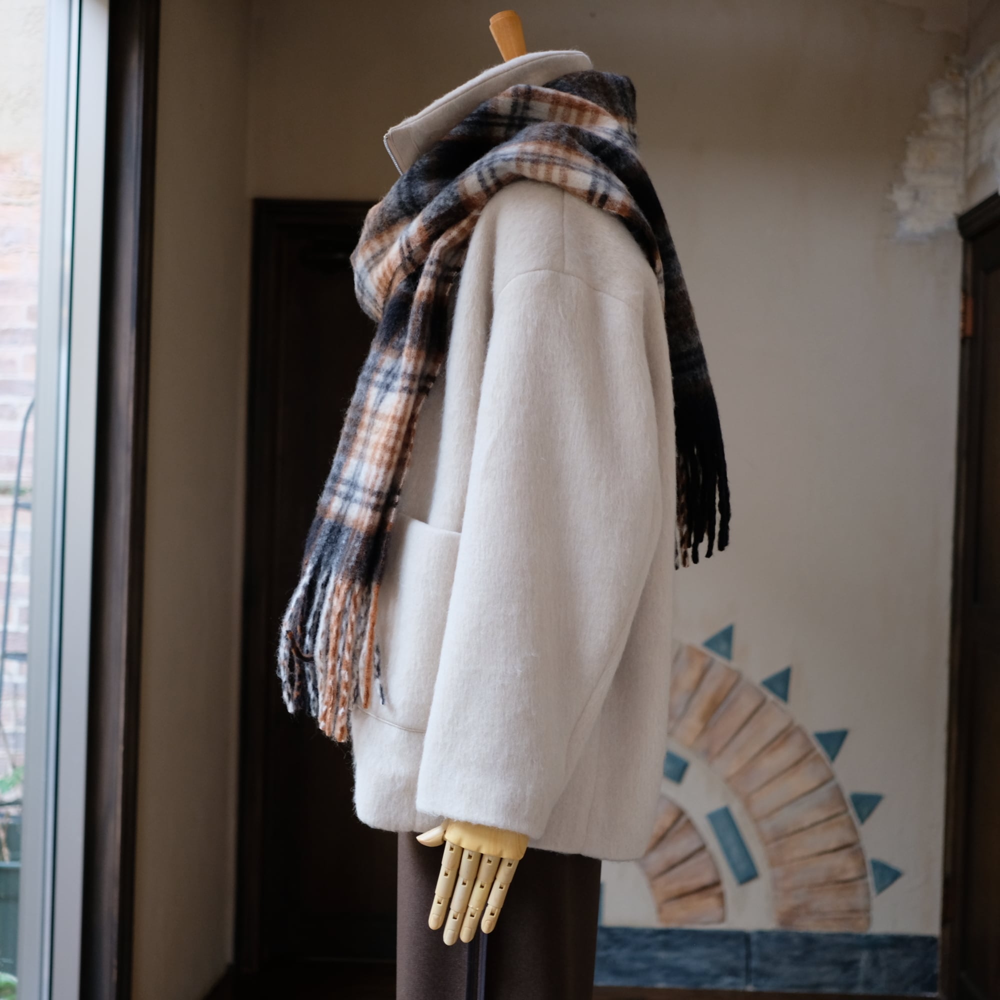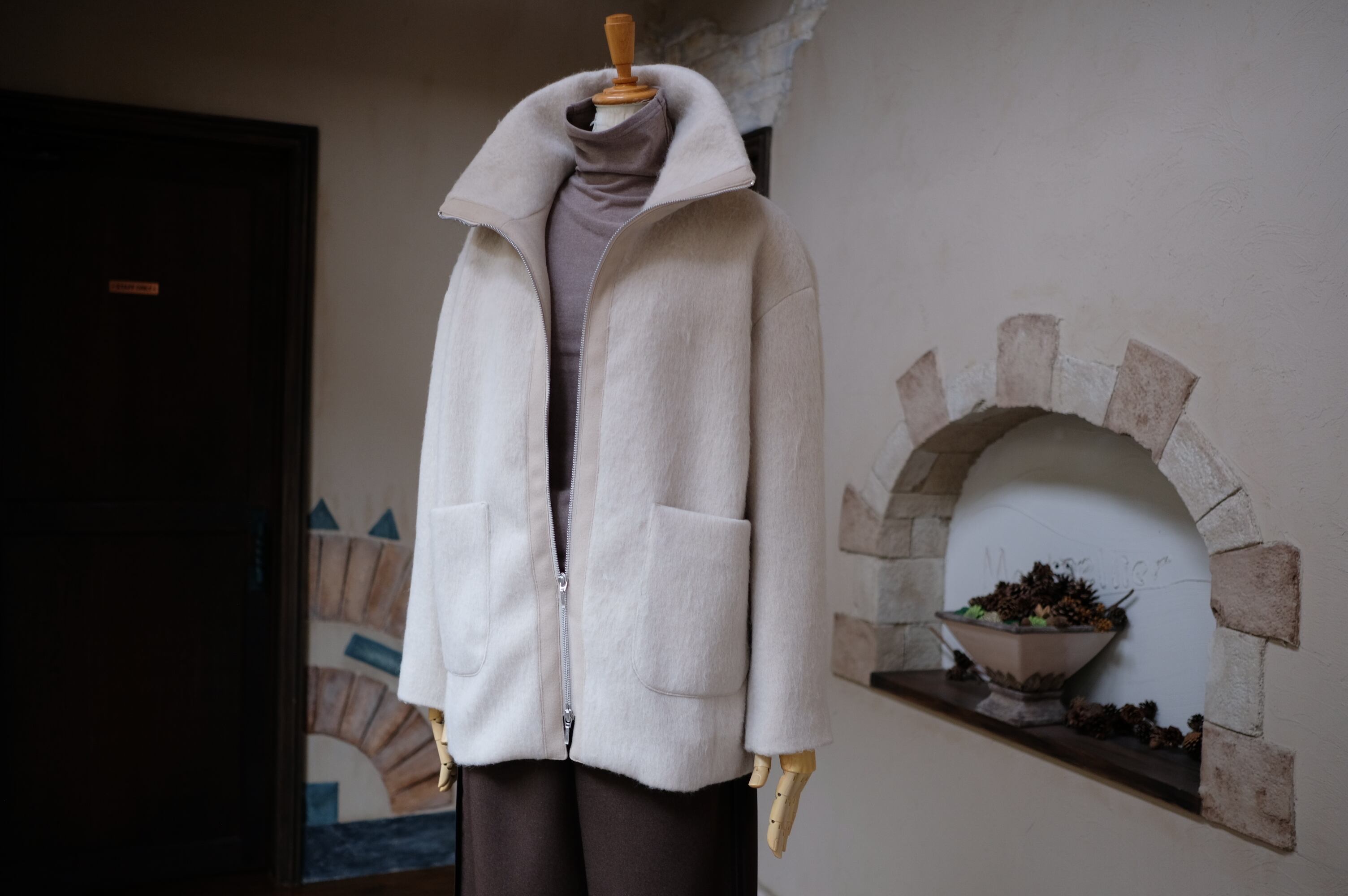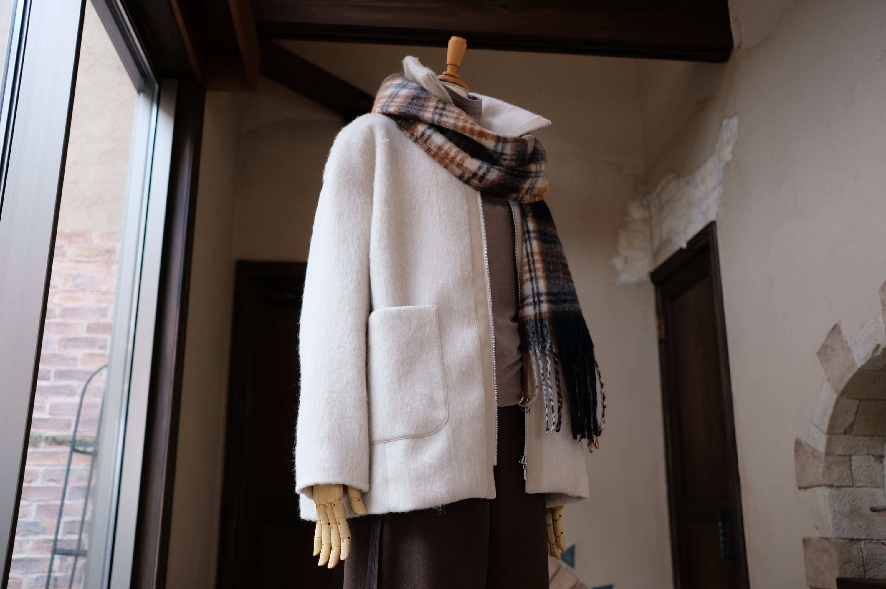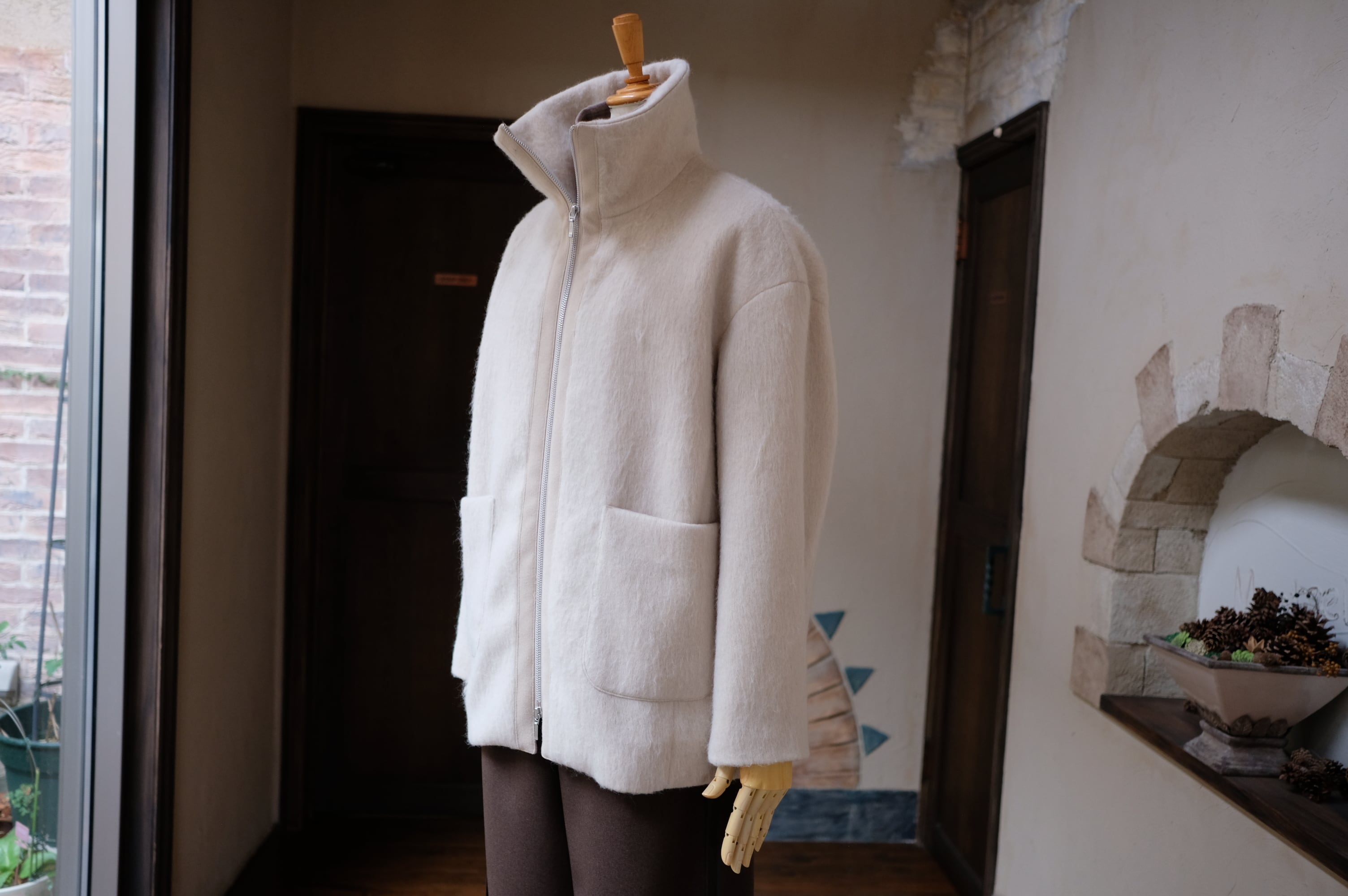 衿を開けてエレガントに、ZIPを閉じてスタンドカラーでシャープにと2WAYで楽しめます。ミドル丈なので、パンツスタイルにもスカートにもマッチし、着回し力抜群。これ一枚で、カジュアルな日常からお出かけスタイルまで幅広く対応できます。