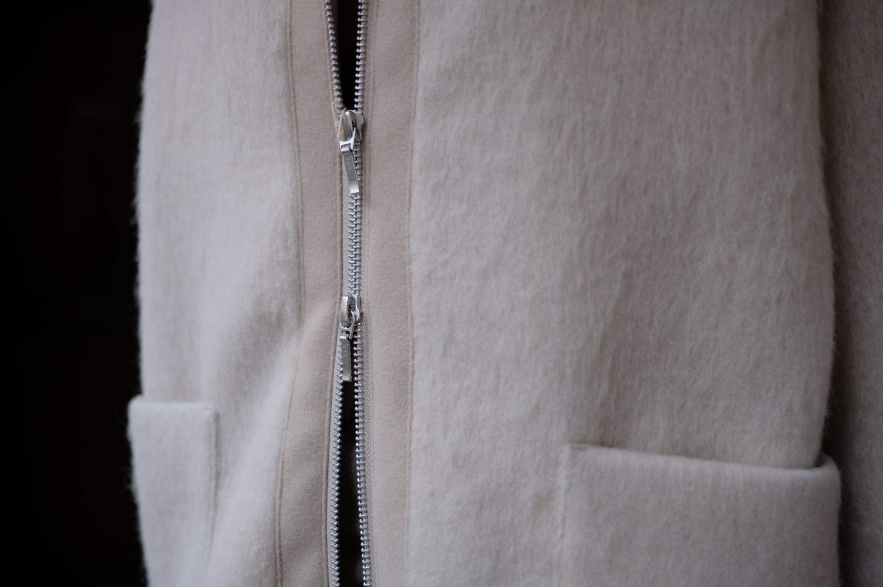 商品名:【MyLanka】フロントジップミドル丈シャギーコート<ライトベージュ>
