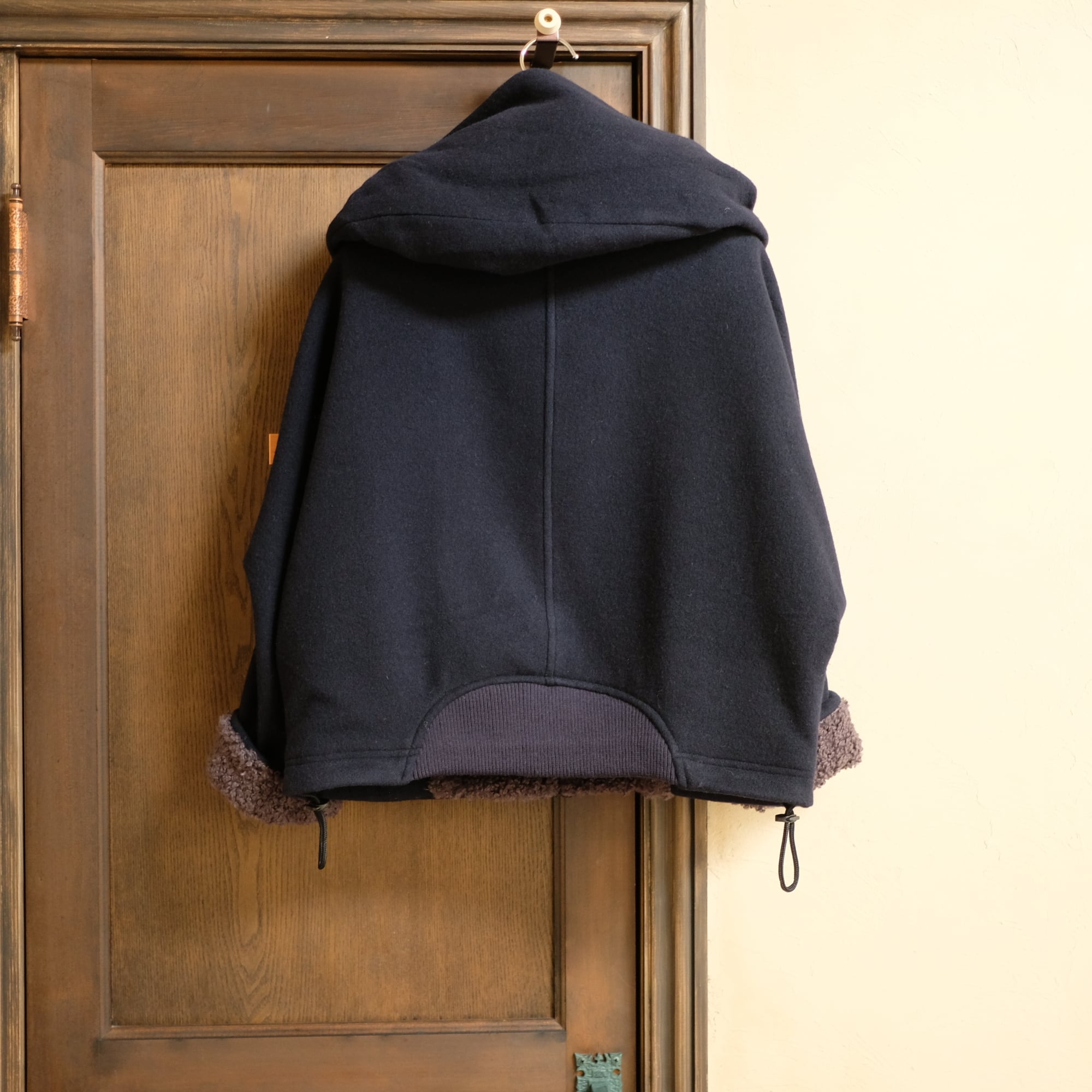 ボアを表にすると立体的なスタンド衿が楽しめ、スタイリングの幅が広がります。袖は折り返しも伸ばしもできるため、シーズンや気分に合わせたコーディネートが可能です。ショート丈はパンツスタイルとの相性も良く、カジュアルから少しお出かけのシーンまで、この一枚でおしゃれを演出します。