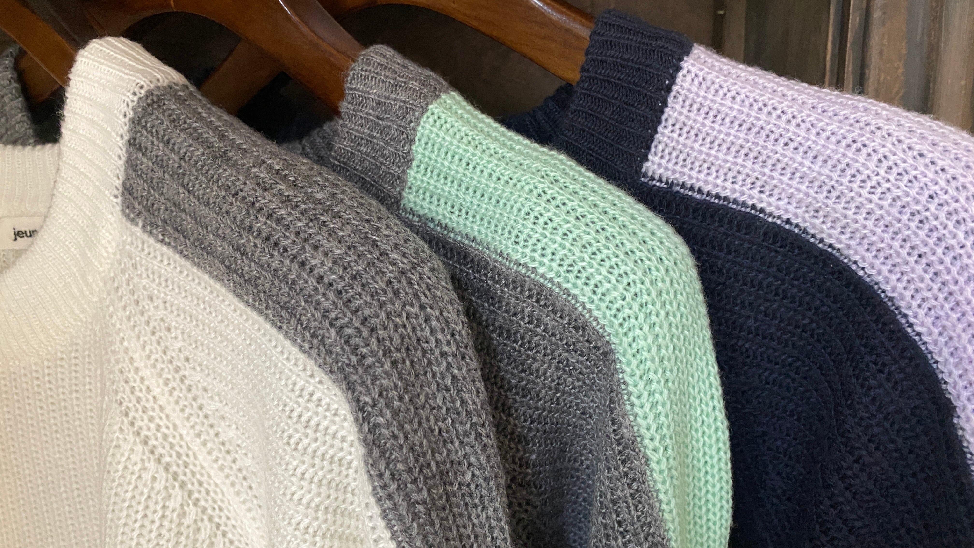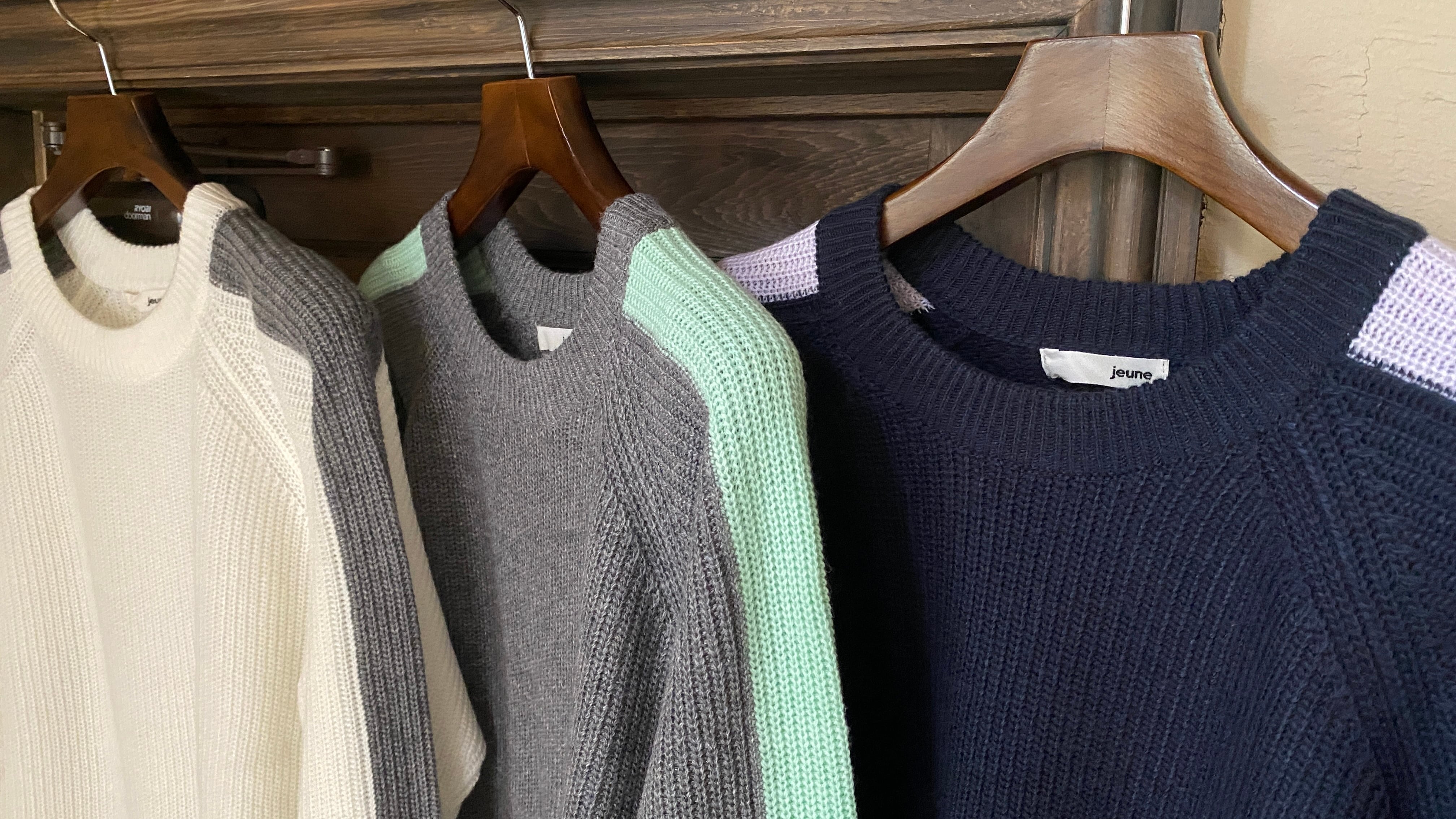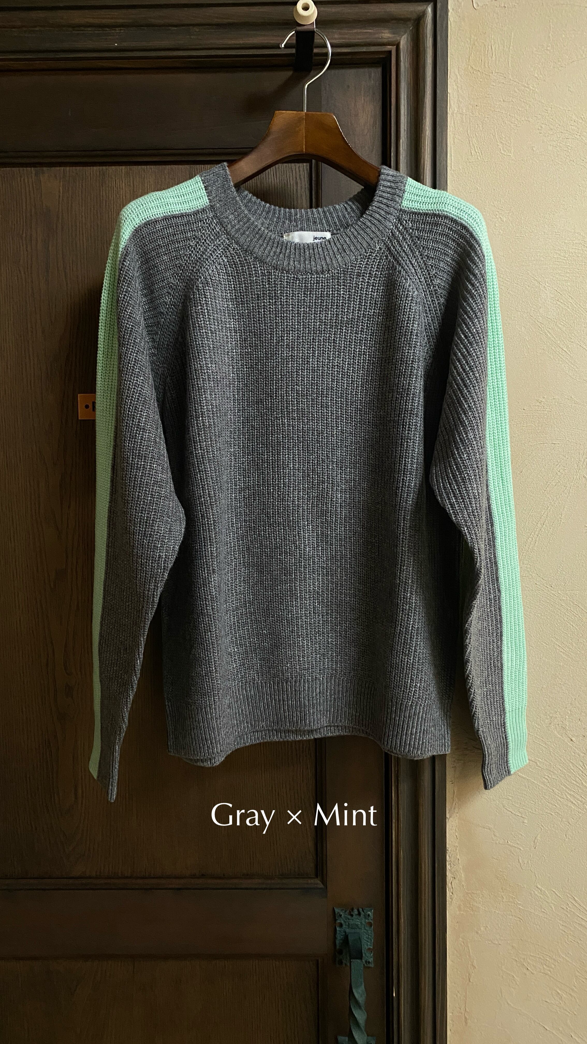 新たなシーズンに向けて、「【jeune】バイカラー切替スリーブクルーネックセーター」が登場です!シンプルなクルーネックデザインながら、肩から袖へと映えるバイカラー切替が印象的な一着です。編み地には畔編みのウール混素材が使用されており、温かさと心地よさを感じることができます。