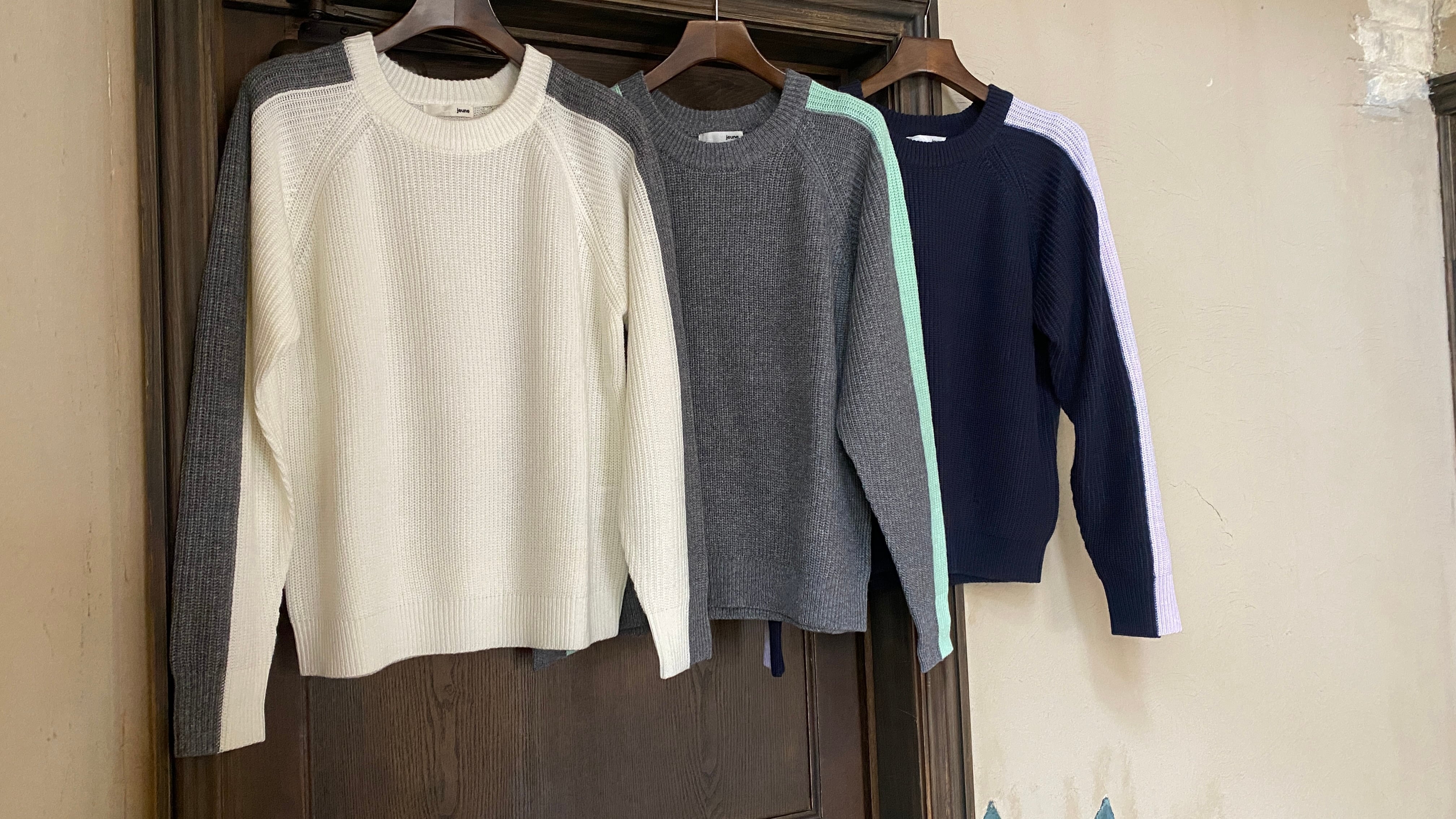 この「【jeune】バイカラー切替スリーブクルーネックセーター」をぜひお試しください!