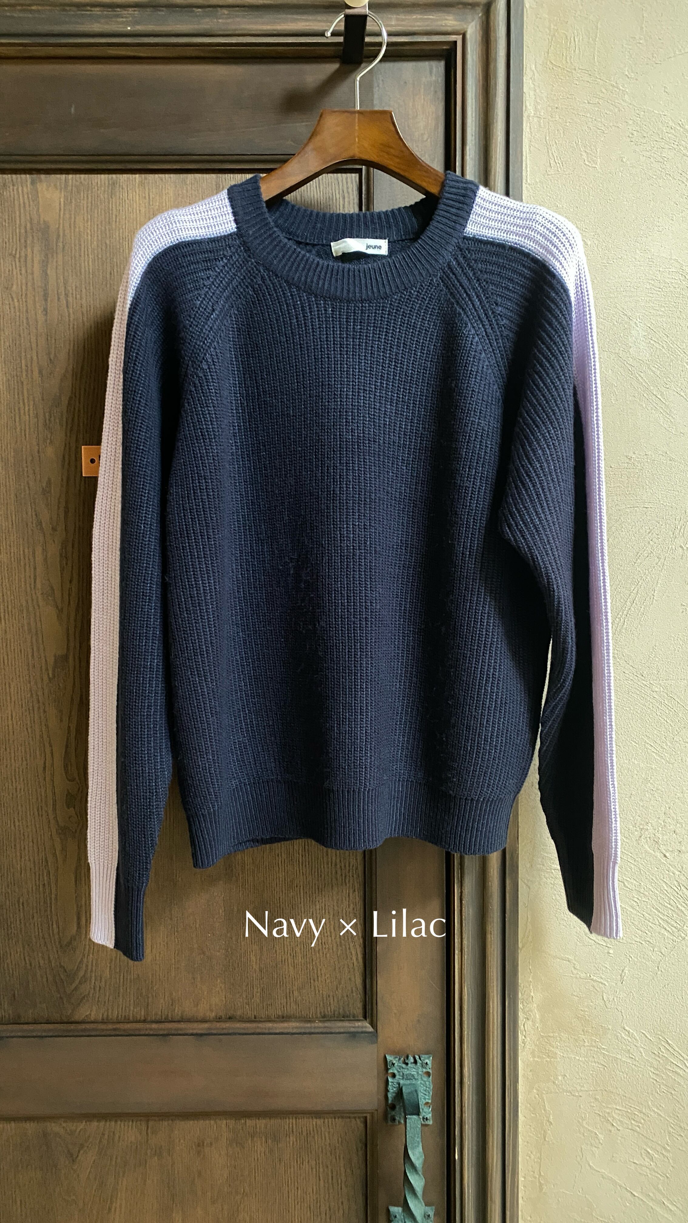 商品名:【jeune】バイカラー切替スリーブクルーネックセーター