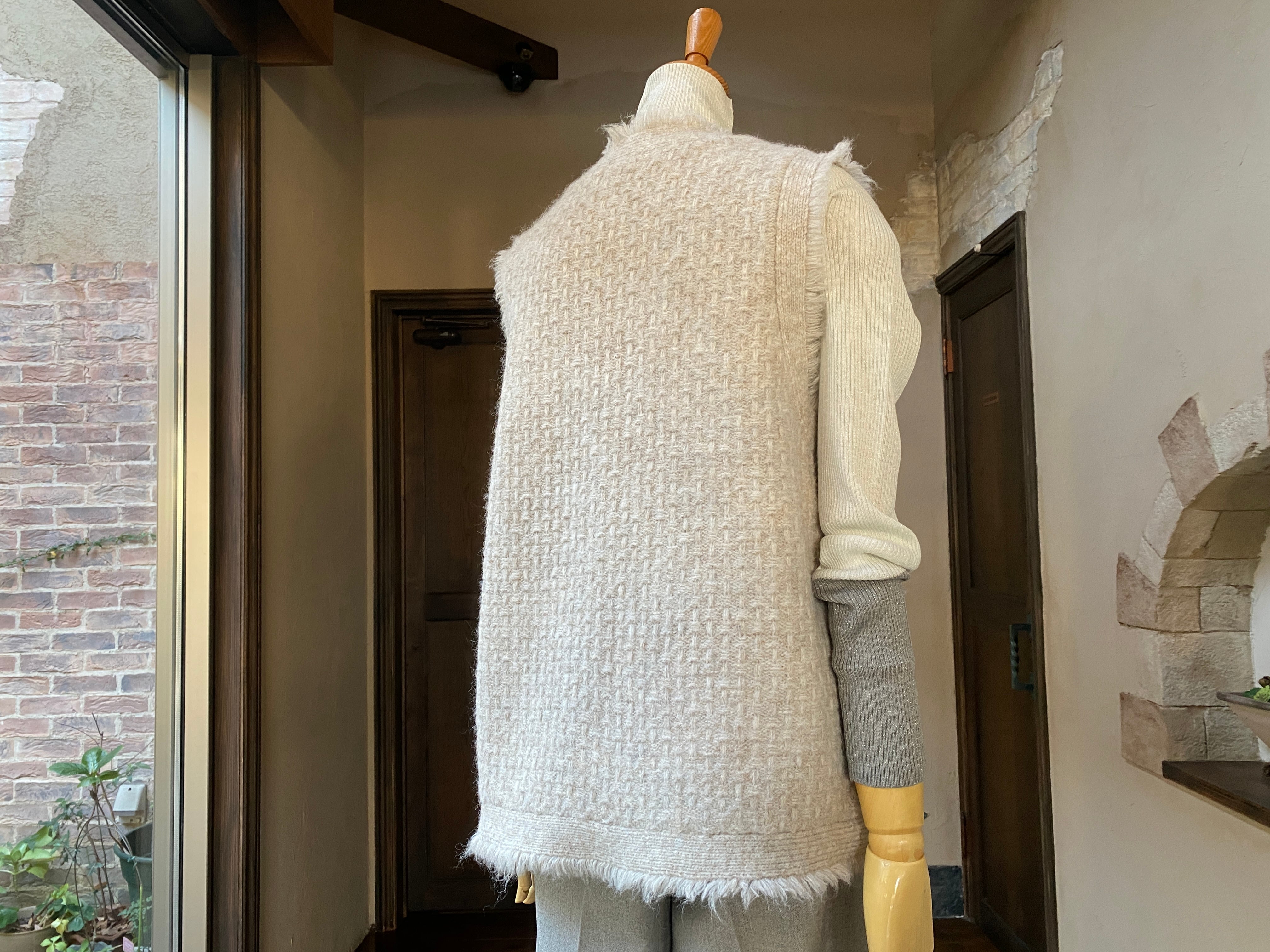 商品名:【MyLanka】ミックスヤーンツィードライクニットジレ<ベージュ>